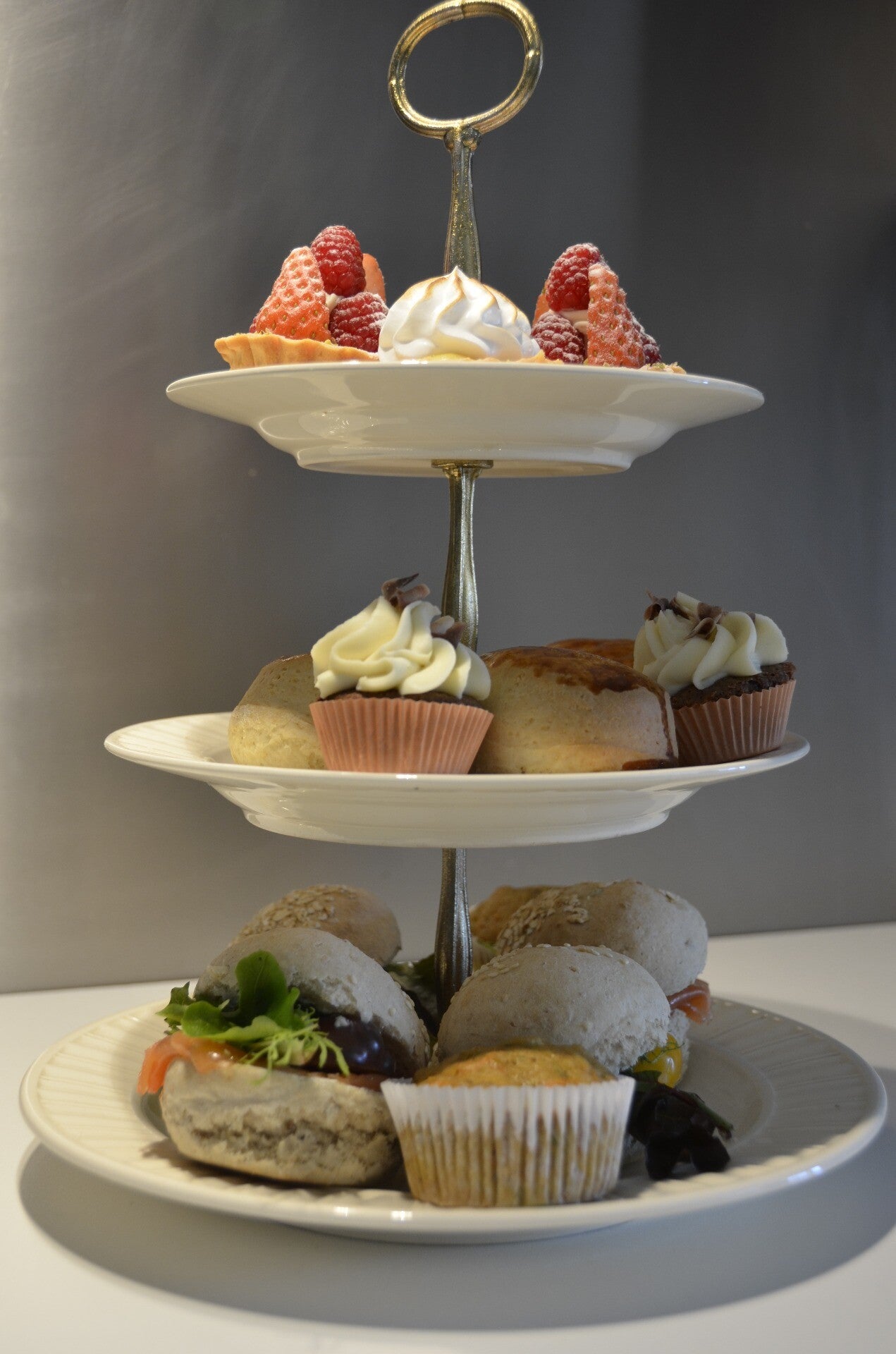 per persoon : 2 scones, 2 broodjes, 1 hartige cupcake, 2 zoete cupcakes, 1 fruittaartje